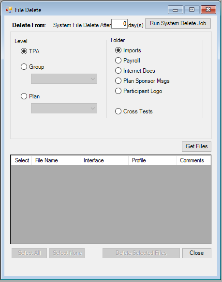 1. In the [Delete From] section, select a desired Level (TPA, Group, or Plan).