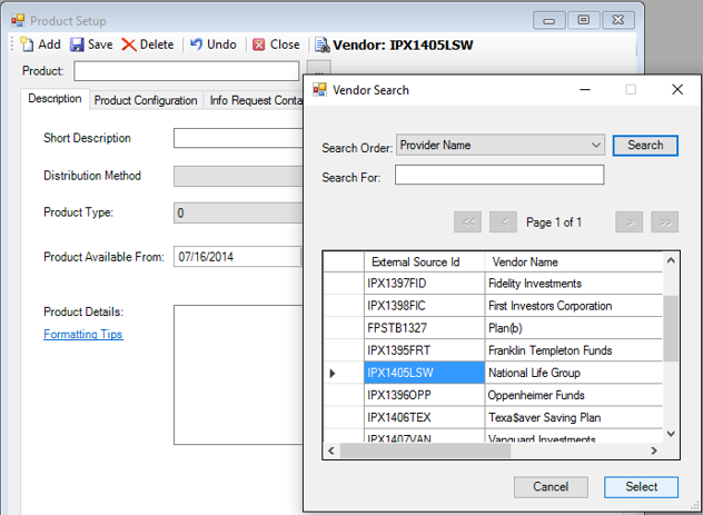 IPX1405LSW, National Life Group, and click <Select>.