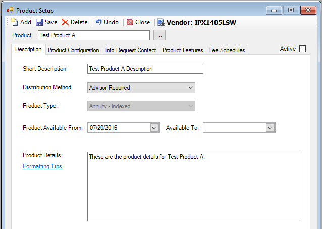 7. Set the Distribution Method to “Advisor Required”, since annuities are advisor required.